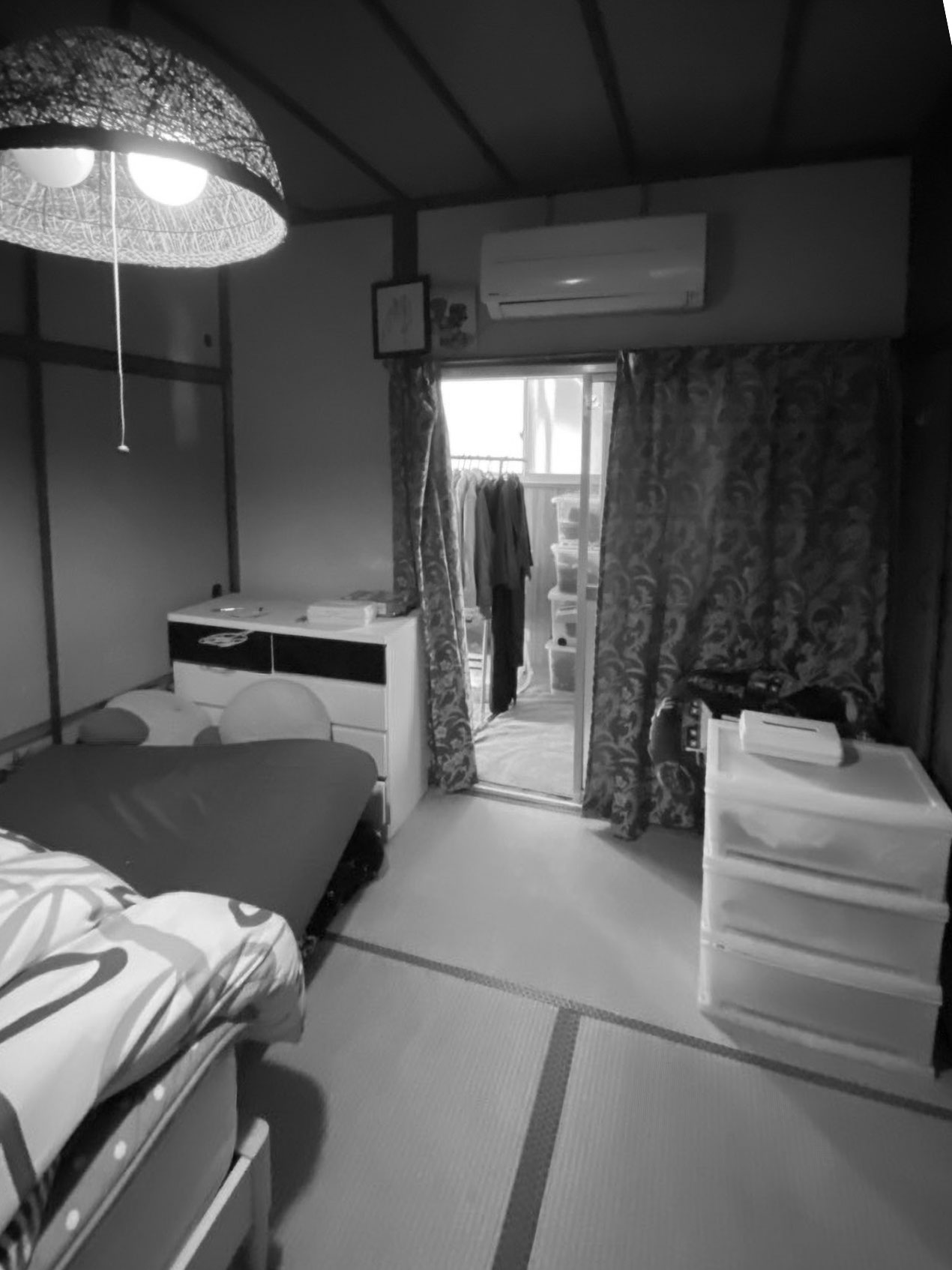 お住まいを部分リフォームし2間続きの和室をリビングに。和の雰囲気をのこしつつ濃いブルーの珪藻土とインテリアでモダンスペースへ。