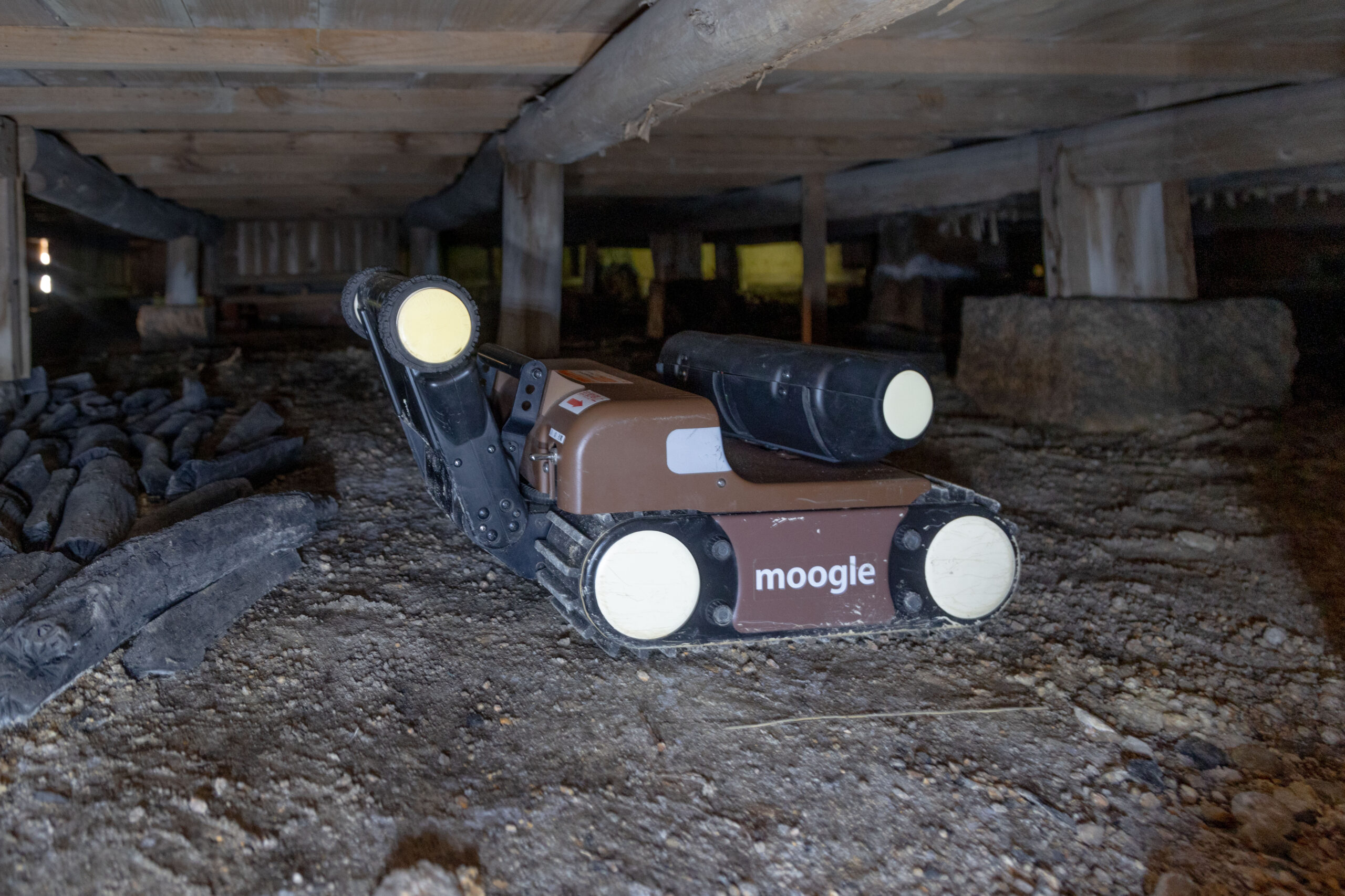自走式ロボットによる床下調査を行い、人が入りにくい場所までカメラ映像で確認します。