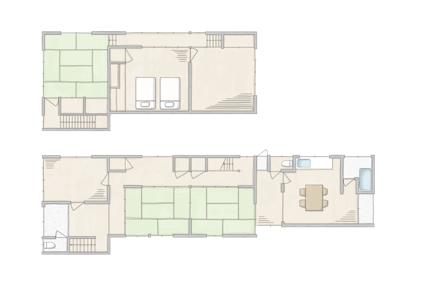改築前は、各階にそれぞれ3部屋ずつある、6LDKの広い民家でした。